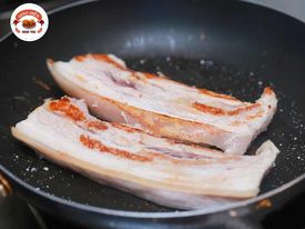 Hành và tỏi khi ướp nên gạch ra phía bên ngoài để tránh bị cháy. Khi phần bì nở ra hết lật phần thịt lại để rán tiếp thịt cho đều. Thịt rán đều, phồng đẹp có màu thật hấp dẫn trông rất bắt mắt